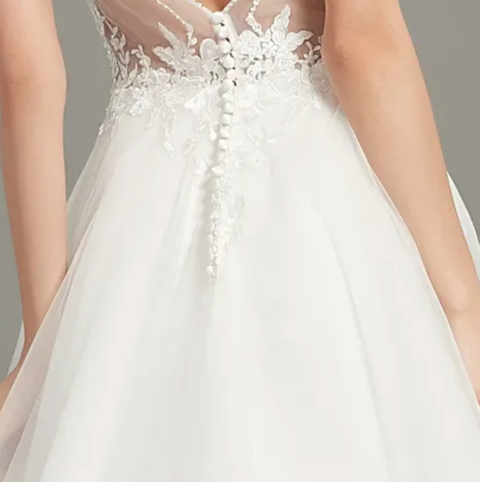Los vestidos tienen una costura LET, una parte importante, por si necesitas abrirlo o cerrarlo. Ten en cuenta que podrías necesitar algunas modificaciones. Deberías hacer una prueba final cerca de la fecha de tu boda, donde podrán ajustarlo a tu talla actual para que te quede perfecto en tu gran día. Dado que tu vestido se envió y no estuvo colgado en una tienda de ropa, es posible que deba plancharse para eliminar las arrugas. Nunca uses plancha y solo la capa superior debe plancharse con una plancha de vapor con un paño blanco debajo para que la plancha no entre en contacto directo con la tela. También podrían necesitarse enaguas para vestidos de gala con más volumen para abultar la falda.