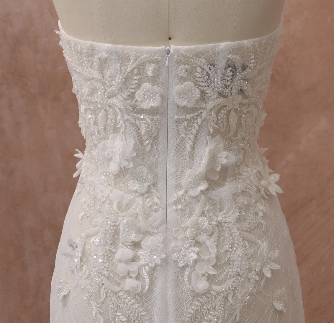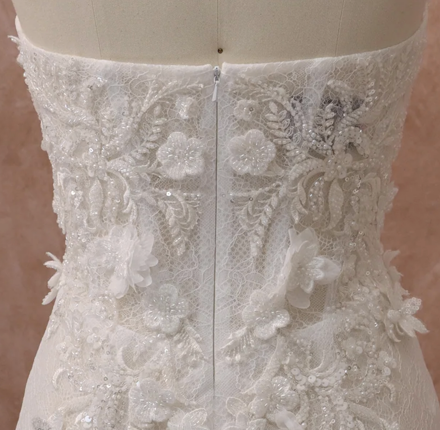 Los vestidos tienen una costura LET, una parte importante, por si necesitas abrirlo o cerrarlo. Ten en cuenta que podrías necesitar algunas modificaciones. Deberías hacer una prueba final cerca de la fecha de tu boda, donde podrán ajustarlo a tu talla actual para que te quede perfecto en tu gran día. Dado que tu vestido se envió y no estuvo colgado en una tienda de ropa, es posible que deba plancharse para eliminar las arrugas. Nunca uses plancha y solo la capa superior debe plancharse con una plancha de vapor con un paño blanco debajo para que la plancha no entre en contacto directo con la tela. También podrían necesitarse enaguas para vestidos de gala con más volumen para abultar la falda.