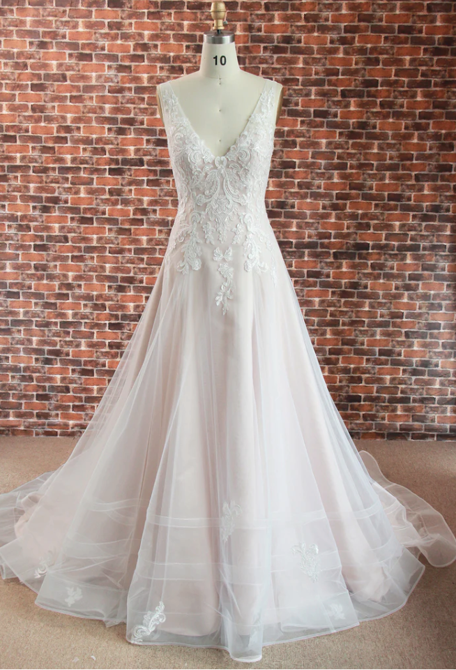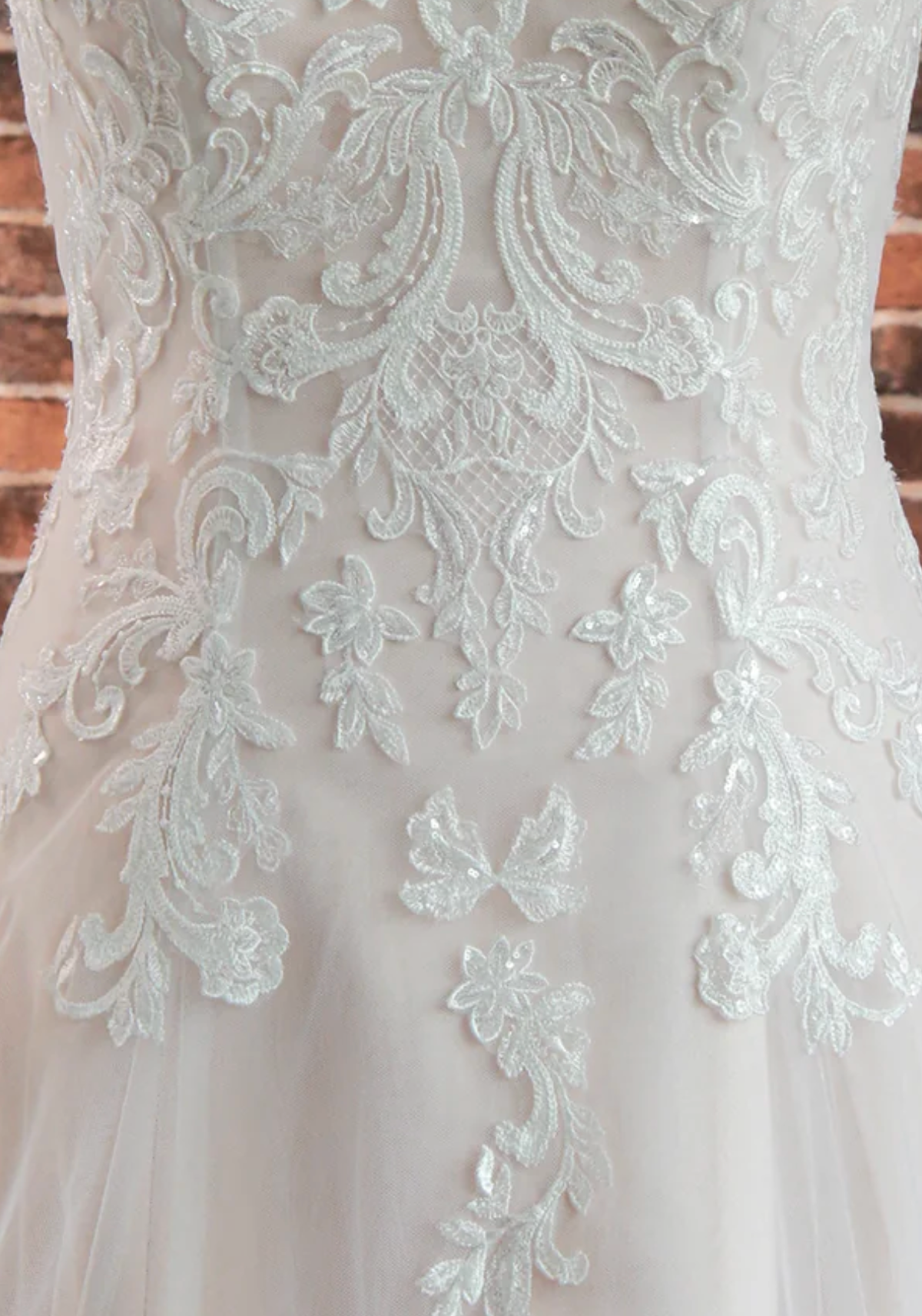 Si esta es tu primera experiencia comprando un vestido de novia, ten en cuenta que no son como los vestidos normales. Pueden ser rígidos debido a las múltiples capas, los adornos cosidos a mano que requieren una tela rígida para coserlos, y las enaguas de tul o el encaje cosidos sobre la tela del vestido también pueden ser rígidos. Los vestidos de novia están cosidos para resistir la presión y mantener todo en su lugar durante el evento. Las copas del sujetador están hechas de poliéster firme para que no se note nada a través del vestido.