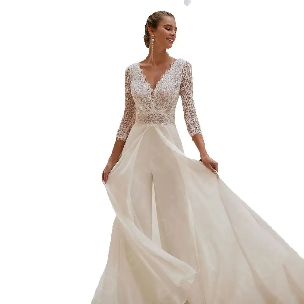 Wedding Jumpsuit Lace Bridal Pants Suit