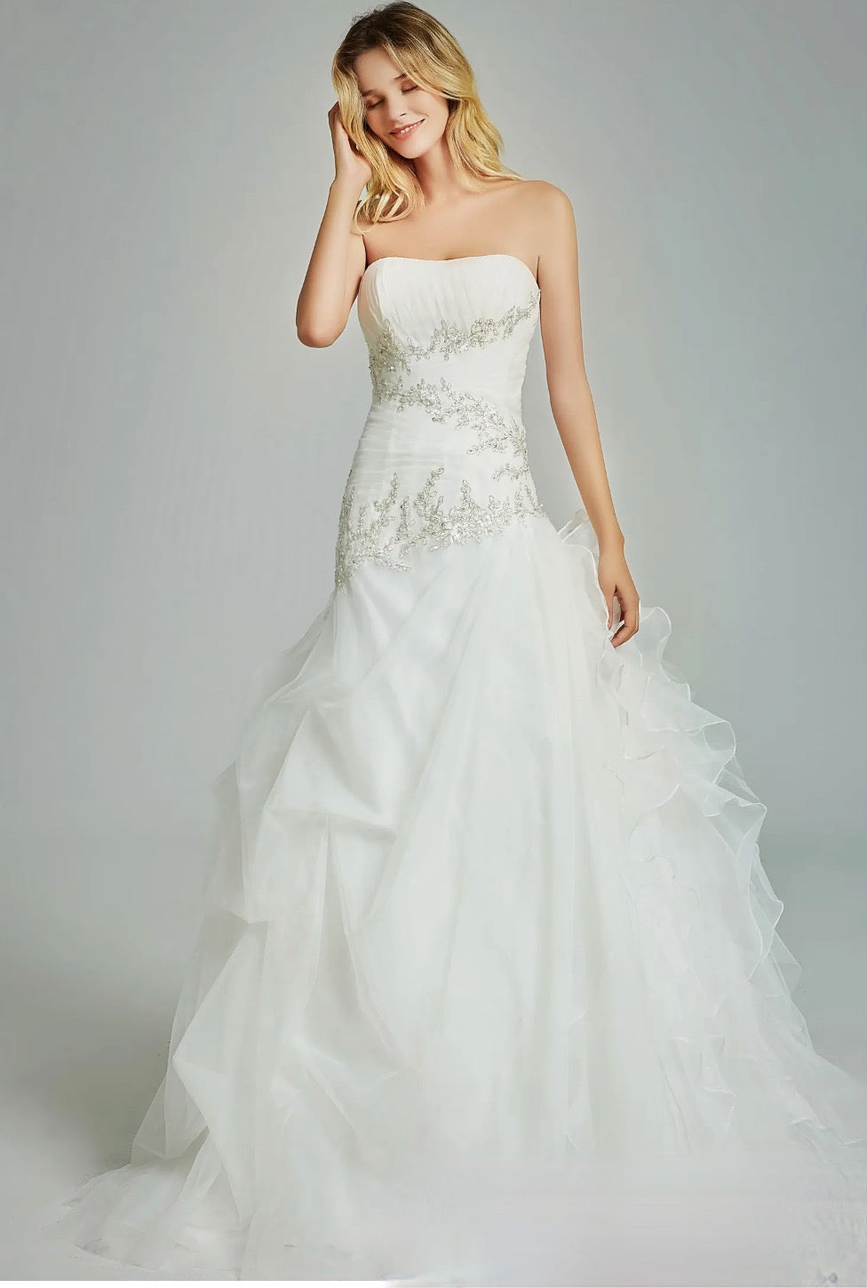 People ask about the risk of buying online and not being able to try on the dress. We recommend you go to a local bridal shop to try on wedding dress styles to find your dream dress style, then shop online for a wider selection and with better knowledge and understanding of what style dress looks best on you. Use the online model photos as a guide. Some models will be holding a dress out or the full train is spread out, this is to show the dress detail to the customer.