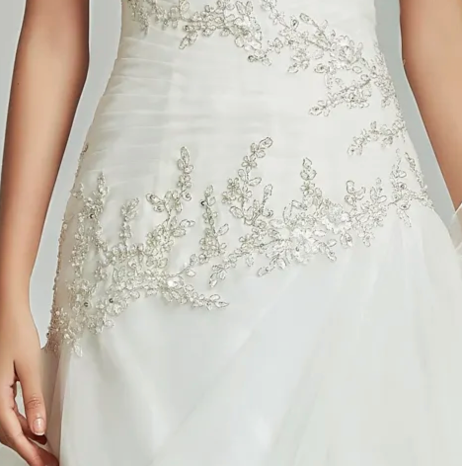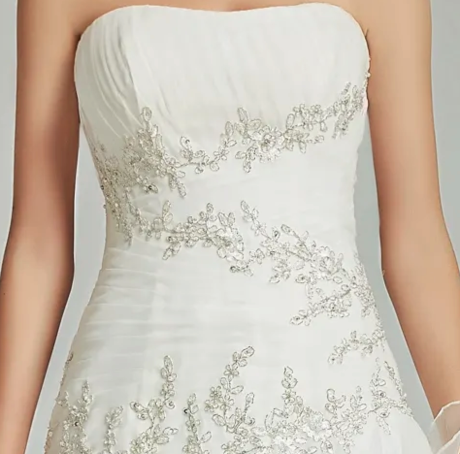 The dresses have a LET seam which is an important part of your dress, in case you need to let the dress in or out. Please be prepared to have some alterations done to your dress. You should do a final fitting locally close to your wedding date where the dress may be adjusted to your current body sizing for the most snug fit on your special day. Because your dress was shipped and not hanging in a dress shop, your dress may need to be pressed to get wrinkles out. Never use an iron on a dress and only the top outer layer should be pressed using a steam presser with a white cloth underneath so the presser does not come into direct contact with the fabric. Petticoats may also be needed for fuller ball gowns in order to puff out a skirt.