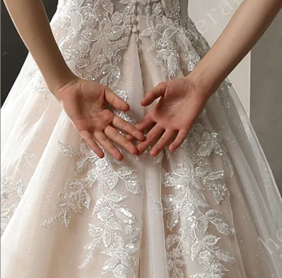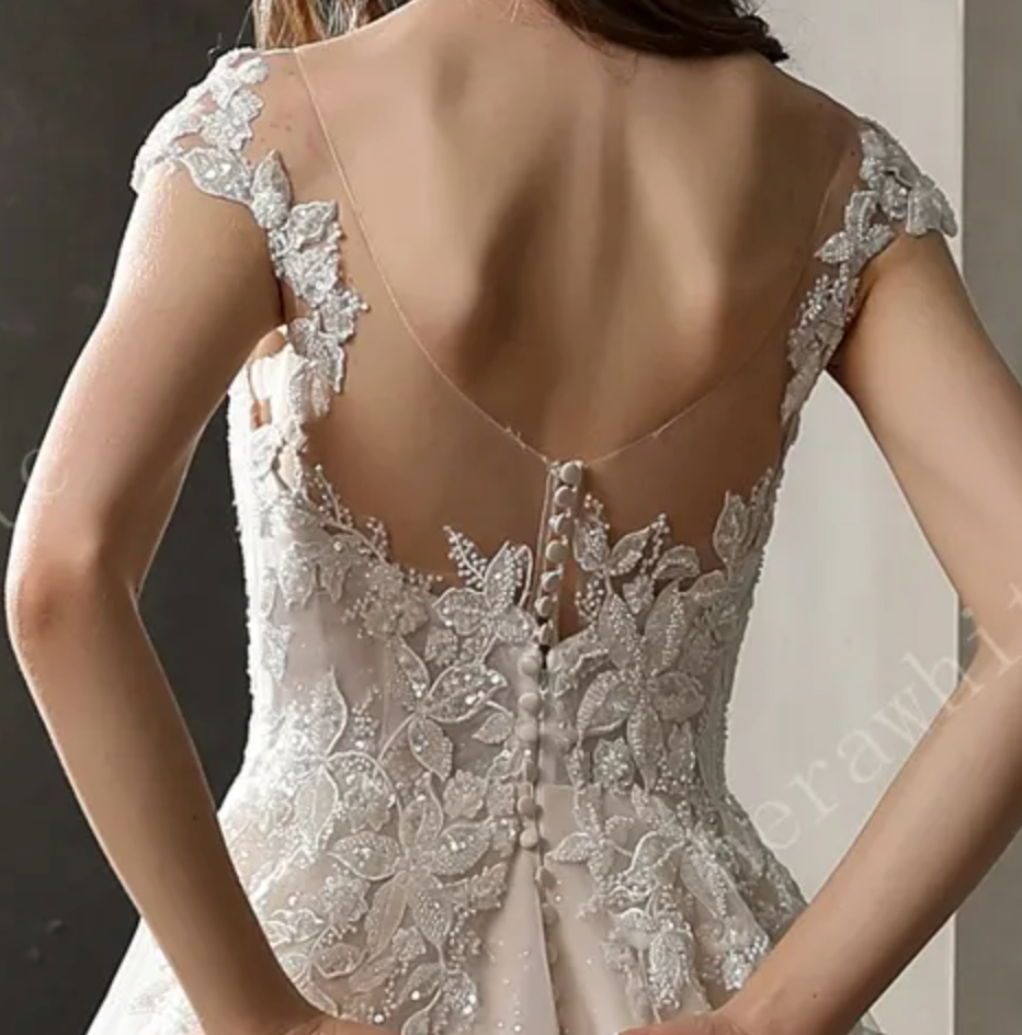 People ask about the risk of buying online and not being able to try on the dress. We recommend you go to a local bridal shop to try on wedding dress styles to find your dream dress style, then shop online for a wider selection and with better knowledge and understanding of what style dress looks best on you. Use the online model photos as a guide. Some models will be holding a dress out or the full train is spread out, this is to show the dress detail to the customer.